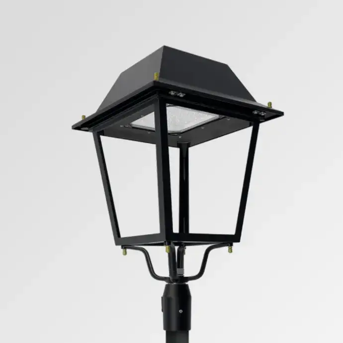 Pour chemins, zones piétonnes et petits espaces nécessitant un éclairage léger et économique.