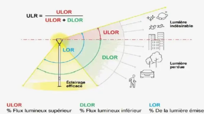 Le ULR mesure la lumière émise vers le ciel. Nos luminaires extérieurs ULR ≤ 1% (voire 0%) limitent la pollution lumineuse et protégeant les écosystèmes nocturnes.